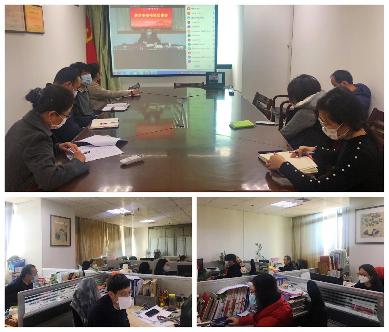为了进一步落实严谨办学、高质办学,更好地满足学生学业期盼,校院两级日常教学质量监控全覆盖,教务处安排校督导组在线听课,建立课程开设情况日报制度、(第一周)每日师生问卷调查、一周师生问卷调查等,进行质量跟踪与监督。现代教育技术与实践训练中心紧急将思明校区公共教室视频监控系统升级改造为“厦门大学在线教学督导与评估中心”,每个上课时间段安排三位党员技术骨干全程跟踪检查各教学平台线上教学开展情况。各学院将优势资源向一线教师集聚下沉,帮助任课教师克服个人困难,争分夺秒地研究教学模式、熟悉平台操作、上传课程资料、进行实战演练。教师们以新模式准时与学生粉见面,“各显神通”、“频出奇招”地调动同学们在线学习的热情和主动性,不让在线课堂弄丢任何一个学生,让高质量网课牢牢“吸粉”而“不掉粉”。