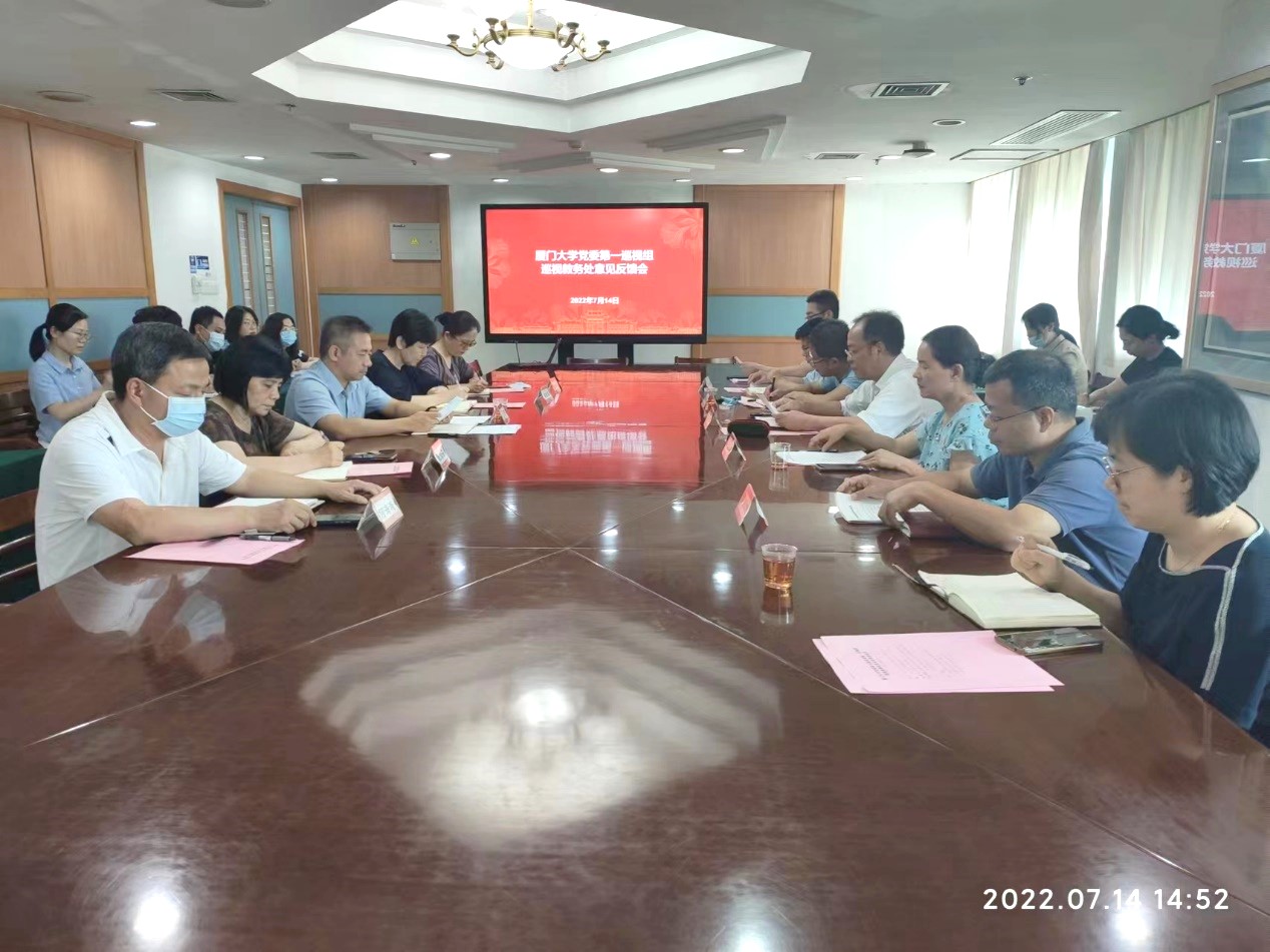7月14日,校党委第一巡视组巡视教务处意见反馈会在颂恩楼1609会议室召开。第一巡视组组长谢银辉、副组长张秀丽,巡视办副主任洪真裁,纪检监察机构代表副处长房太伟,组织部门代表校党委组织员兼党建办副主任葛郝锐出席会议。意见反馈会由教务处处长王程主持。教务处全体在职教职工参加了会议。