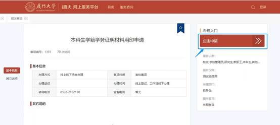 1.登录“厦门大学信息门户”(网址:i.xmu.edu.cn)。