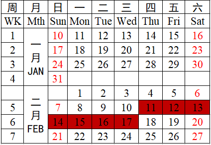 (3)寒假周次安排如下,教室预约请按该周次安排进行申请。