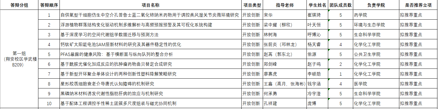 附件:1. 2025年厦门大学科研攀登计划项目拟推荐重点项目答辩名单