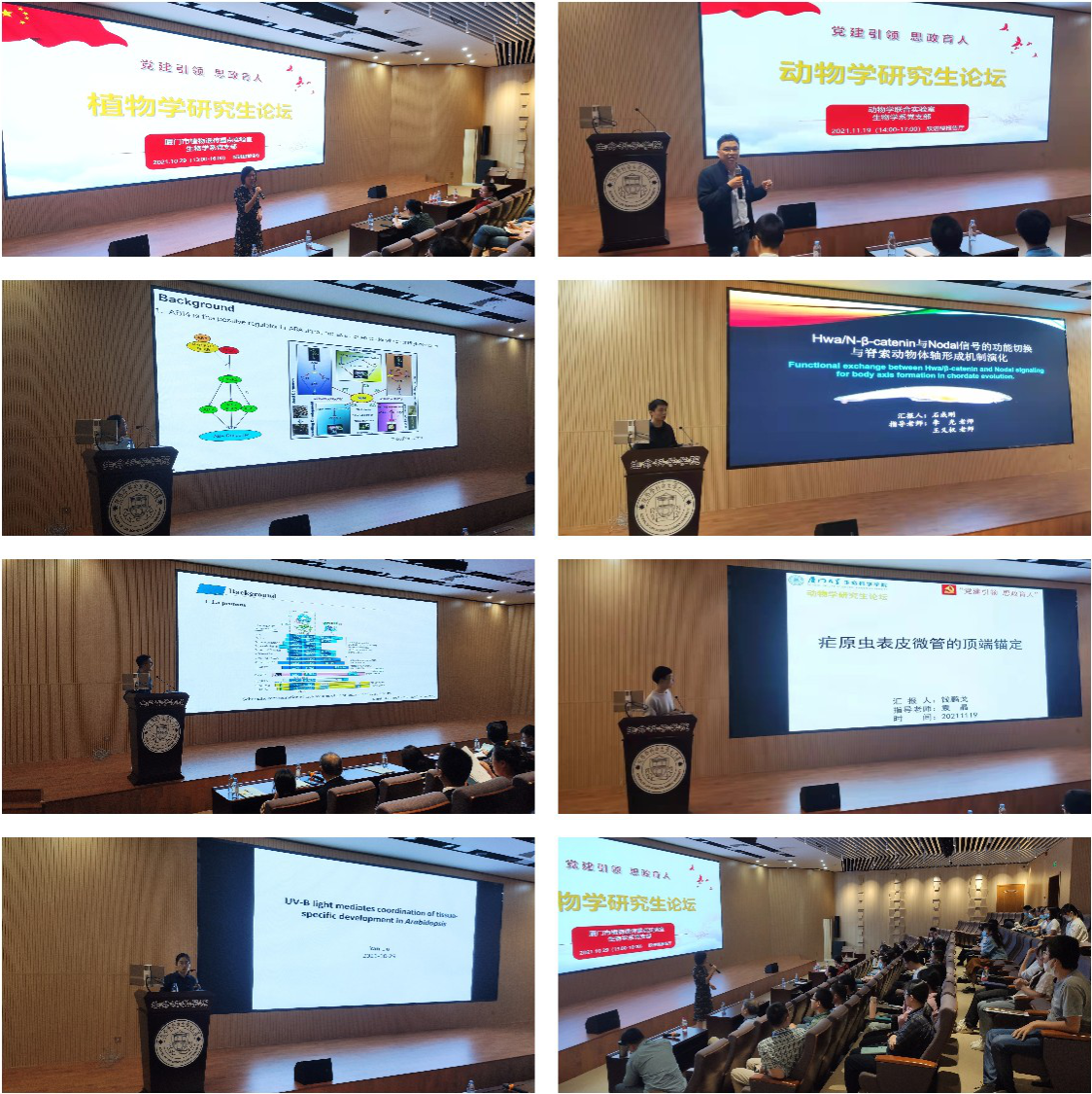 充分发挥党建引领作用,开创思政育人新局面。我院生物学系党支部发挥动植物等专业学科特色和优势,挖掘提炼课程内蕴含的家国情怀、社会责任、伦理规范、科学和人文精神等思想政治教育资源,构建各类课程与思政课程同向同行、多方协同的全员、全程、全方位的育人格局。打破固化思维与传统模式,将课程思政搬到了支部共建与联学中,创新性地将学术研讨系列活动引入支部活动,坚持支部活动深入到教学团队、科研团队和学生班级,通过党建引领,立足支部特色和优势,将党建工作扎实融入育人实效和科研攻关,推动党建与教研有机融合。支部联合动植物学师生,定期举办“党建引领,思政育人-动植物学研究生论坛” 系列活动,迄今共成功举办14场,每场都吸引了众多师生参与,受到一致好评。通过共建联学的方式,将党建与学生主业有机结合、融会贯通,既让学生受到了思想政治的洗礼,又能精进自己的科研能力,积极响应了党中央对培养有志气、有骨气、有底气的新时代青年的殷切希望。