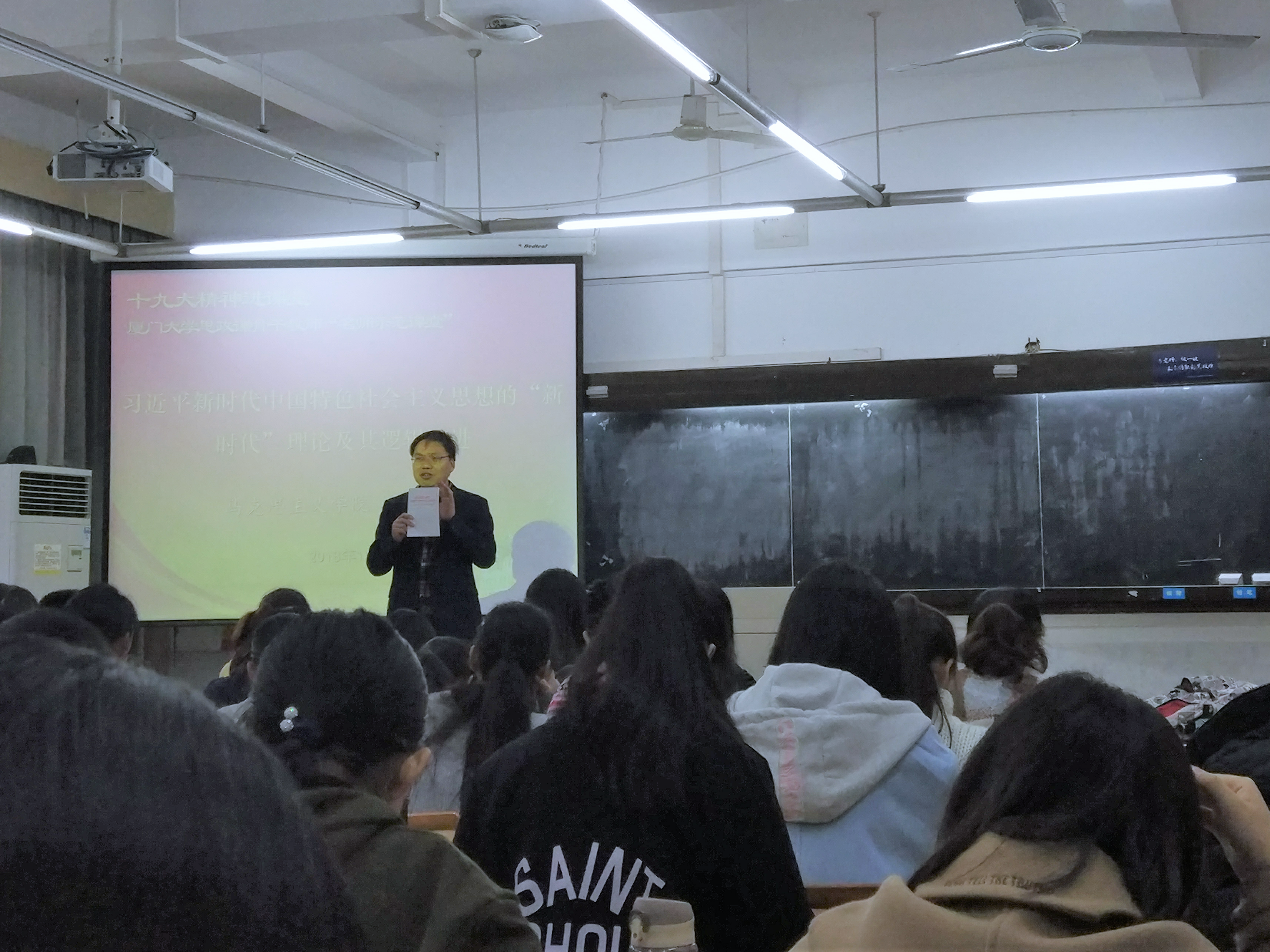 在佳宏伟老师看来,思政课不只是知识的简单传递,更是关系到个体思想的型塑,是“分析社会、解决人生问题的一把钥匙”。正如林堃钰同学在课程评价时所说:“佳老师的课,让厦大学子不忘历史,不忘初心,教会我们要以自信拥抱未来,将个人的发展与时代的需要联系在一起,‘不驰于空想,不骛于虚声’,以实际行动奉献社会,做有梦想,有担当的新时代答卷人。”《中国近现代史纲要》课程提供的一整套历史逻辑、历史观和历史分析方法,帮助当代大学生打好“中国底色”,用中国梦激扬青春梦,让正确的世界观、人生观、价值观成为他们人生路上的指明灯,勇做走在时代前列的奋进者、开拓者。