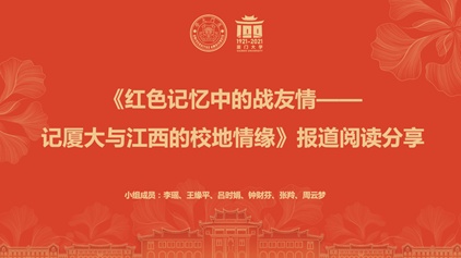 上海小组的阅读报告侧重分析语言风格,认为该篇报道的行文在保留新闻报道客观基调的同时,其辞藻比一般新闻报道更为华丽,多用比喻、对仗,以大标题“东风海上来,潮畔大厦生”为例,既有海派大气的风味,也一语双关,让读者联想到“厦大”的同时,也能望见字里行间中的繁华的上海都市形象。上海小组蒋晶晶同学动情地说,“读了这篇报道,深受感动,我在想也许在不久的将来,我也能够像这些厦大的前辈那样,为吾国放一异彩。”