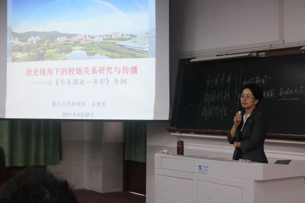 小组分享结束后,厦门大学档案馆馆长石慧霞做了“校史视角下的校地关系研究与传播——以《为吾国放一异彩》为例”的专题报告。她首先介绍了这个系列文章的缘起,“为吾国放一异彩”出自1919年7月陈嘉庚先生在厦门陈氏宗祠发表的《为倡办厦门大学校附设高等师范学校的演讲词》,学校以此为题策划一系列校地关系文章,是为了庆祝中国共产党成立100周年和厦门大学建校100周年献礼。工作组以党史校史资料为基础,从历史、现实、未来展望的时间跨度审视和梳理大学与地方在人才培养、科学研究、社会服务和文化传承等方面的百年校地故事。由于学校对该项目的立意很高远,其策划之初就明确了每一篇校地关系文章都要争取在当地党报和主流媒体首发,因此每篇文章除了要对不同地方的区位特色和地域文化进行深入研究外,对于文章传播的广泛性、针对性、互动性、延续性等也必须进行精心打磨,最终形成了以大学历史史实为基础、以人才培养为主线、以校地互动关系为整合框架的报道模式,取得积极反响。石慧霞称,这个项目成功实现了“校史研究”和“校史传播”的高度融合,证明了大学是通过高质量的人才培养,在服务区域、服务国家的过程中不断成长。