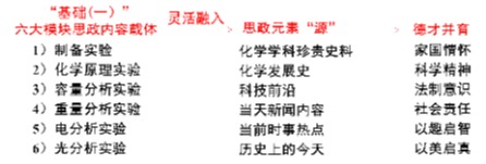 “基础化学实验(一)”在课程内容具体设计时,根据学生的实验基础和认知规律,设计了化合物制备、定量分析等六大模块的实验内容,教学团队持续就六大模块的实验教学内容进行较系统地挖掘思政映射点,形成了初步的实验课程思政教学案例要点。但由于教学内容庞杂,思政映射点多,教学团队成员根据自身的教学和科研方向选择1–2个模块,挖掘相应模块中具体实验教学内容中的思政映射点,在教学实践中相互交流、借鉴、学习和延伸、拓展,并与时俱进地赋予新的内涵,扩展其映射面,并进行有效实践,形成系统的化学实验课程思政教学案例。