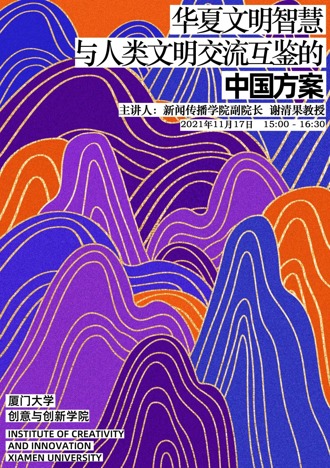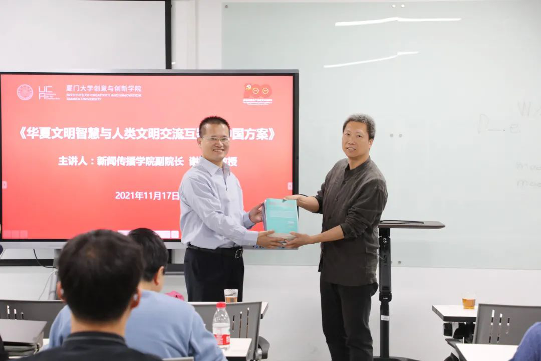 为进一步深化课程思政教学改革,将思想政治教育融入人才培养全过程,丰富课程育人内涵,11月17日下午,厦门大学新闻传播学院副院长谢清果教授应邀来我院作题为“华夏文明智慧与人类文明交流互鉴的中国方案”的讲座,学院全体教师参加本场讲座。讲座由创意与创新学院副院长甘森忠主持。