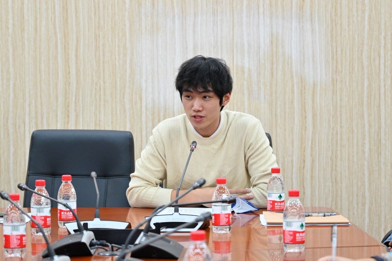 国际关系学院的田峻豪同学作为学生代表进行了发言。他首先感谢学校搭建卓越计划平台,为项目参与同学与国内外高校全球治理相关的老师,提供沟通渠道,有效开阔了同学们的视野,加深对国际化的理解,增进知识储备。他积极表态将充分利用学校的课程学习平台,加快提升自我,做好首批卓越计划学长的带头作用。