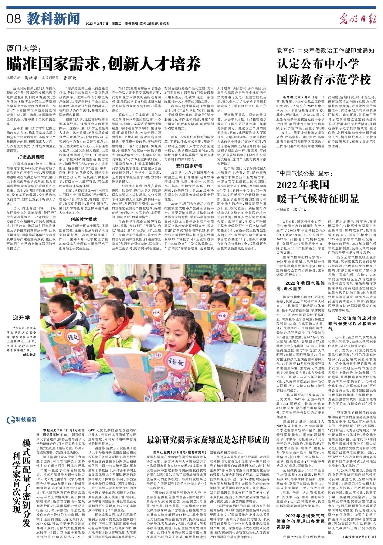 2月7日,《光明日报》第八版刊发题为“厦门大学:瞄准国家需求,创新人才培养”的深度通讯,报道我校积极探索人才自主培养的厦大模式,人才培养质量显著提高。