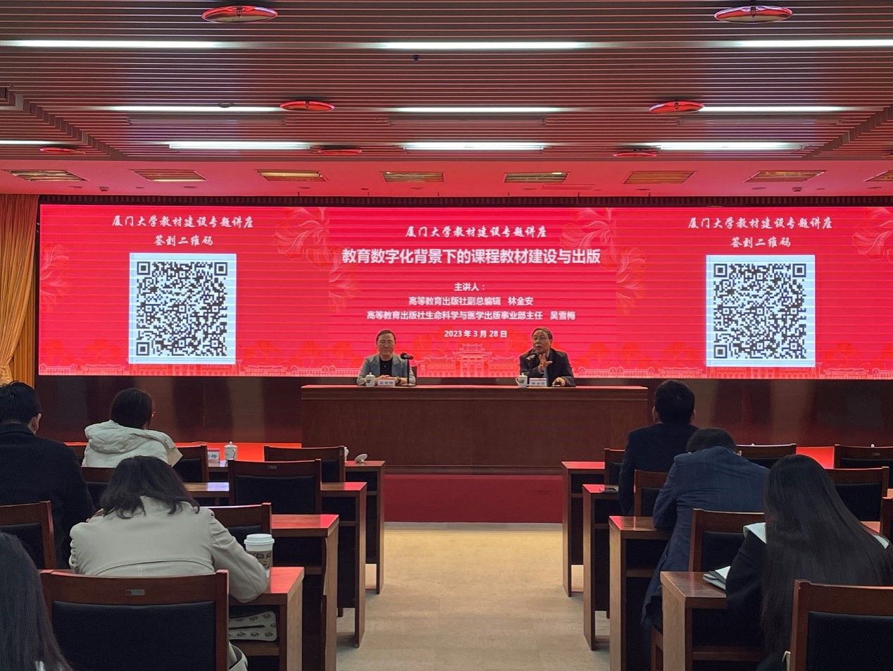 为进一步加强新时代教材建设,推进学校教材建设高质量发展,提升教师教材建设能力,3月28日,高等教育出版社副总编辑林金安、高等教育出版社生命科学与医学出版事业部主任吴雪梅应邀至学校交流,并为我校教师带来题为《教育数字化背景下的教材建设与出版》的讲座。讲座由美育与通识教育中心负责人、教务处副处长楼红英主持,各教学培养单位分管本科教学副院长、分管研究生教育副院长、校级教材研究与建设基地负责人和团队成员、学校教材出版资助立项项目负责人和参与教材编写出版的相关教师共同聆听了讲座。