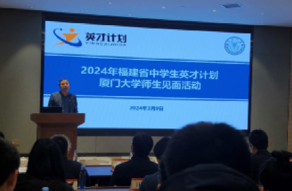 3月9日下午,2024年福建省中学生科技创新后备人才培养计划(以下简称“英才计划”)厦门大学师生见面交流活动在思明校区克立楼报告厅成功举行,来自省内21所中学的70名“英才计划”学员与我校导师见面。省科协青少年科技活动中心副主任王玉梅,校学生工作处副处长刘俊英,教务处副处长何海涛,厦门大学“英才计划”导师、相关中学老师、“英才计划”学员及家长参加了活动。活动由教务处副处长何海涛主持。
