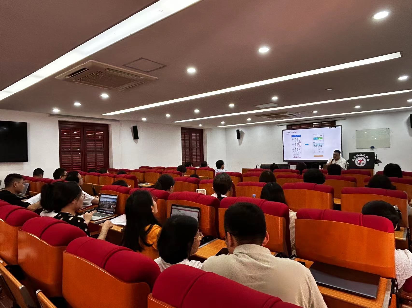 5月31日下午、6月19日上午分别在外文学院、马克思主义学院举行两场专题培训活动。通过数字化赋能教育教学主题报告,平台应用场景介绍以及功能互动演示等环节,引导教师利用信息化工具提高工作效率、优化教学策略从而激发教学创新、提升教学效果。美育通识与通识教育中心副主任兼教务处副处长黄艳萍、研究生院培养与管理办公室副主任郭建鹏、现代教育技术与实践训练中心副主任刘传尧、现代教育技术与实践训练中心副主任郑镇锋,外文学院、马克思主义学院分管领导、任课教师120余人参加了此次活动。