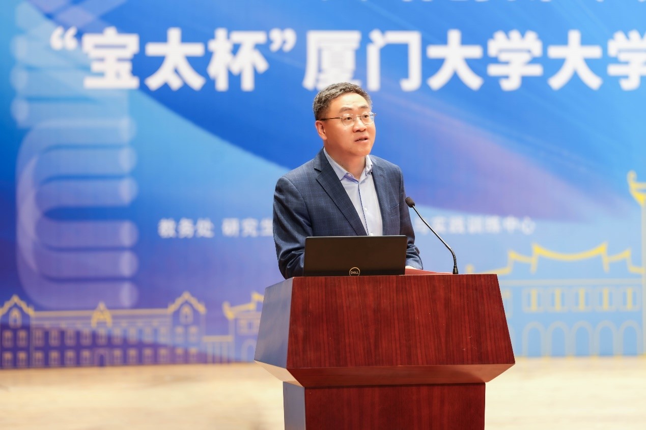 在一片热烈的气氛中,研究生院常务副院长谢兆雄、教务处副处长李成、航空航天学院副书记林蔚、管理学院副书记郑碧娇上台进行了授旗仪式,正式拉开2024“宝太杯”厦门大学大学生创新大赛序幕。李成副处长对大赛的工作进行了详细部署,他指出要提高重视程度、落细参赛组织、加大宣传力度,学校也将通过打造创新联动平台、加强定期培训机制、完善激励机制、对接孵化平台等举措,全力做好大赛服务保障工作,确保大赛顺利进行。